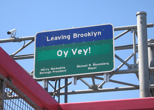 Crossing the Williamsburg Bridge into Manhattan, there is a sign (an actual legitimate road sign) that says “leaving Brooklyn, Oy Vey!”