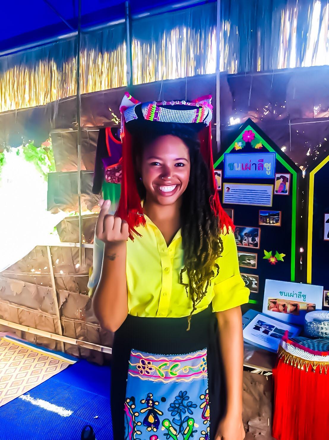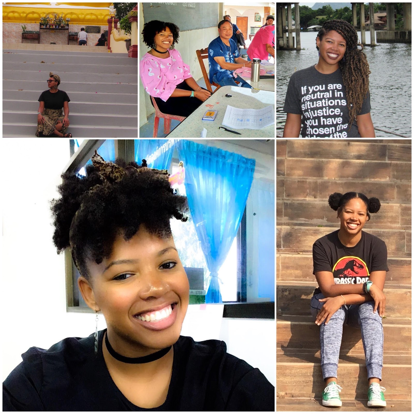 I also got back to “her” by displaying parts of “her” that were unfamiliar to my community like putting my nose ring back in, being a strict vegetarian, and changing my hairstyles every few weeks from Afros, to hair wraps, to long braid extensions, to locs. Gathering a confidence I never had to tap into back in America to recover the things about my identity that I put in the background for the sake of integration. Thai people are very direct when it comes to physical appearances, and it is not normal for someone to constantly change their hair like I do. I took a breathe each day I left my house and gathered a confidence and preparedness to find comfort in stares, pointing, and to answer every question about my physical alterations. “Did you cut your hair?” “How long did it take to do your hair?” “I have never seen your kind of hair!” And of course, “can I touch it?”