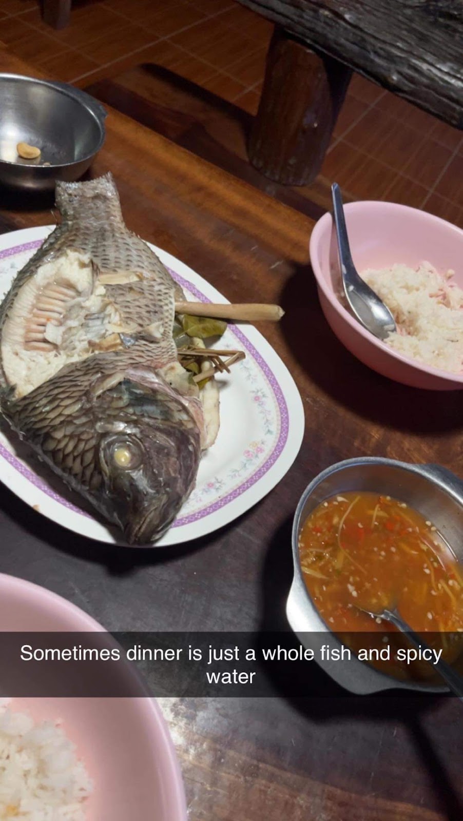 Classic case of person goes to a new country and falls in love with the food. It took some getting used to though for sure. I definitely was following my host family monkey see, monkey do style pulling the meat off the bone. And yes I still find myself pulling tiny little bones out of my mouth from time to time. But it’s really grown on me and now when I see this and a bit of rice I’m ready to chow down.