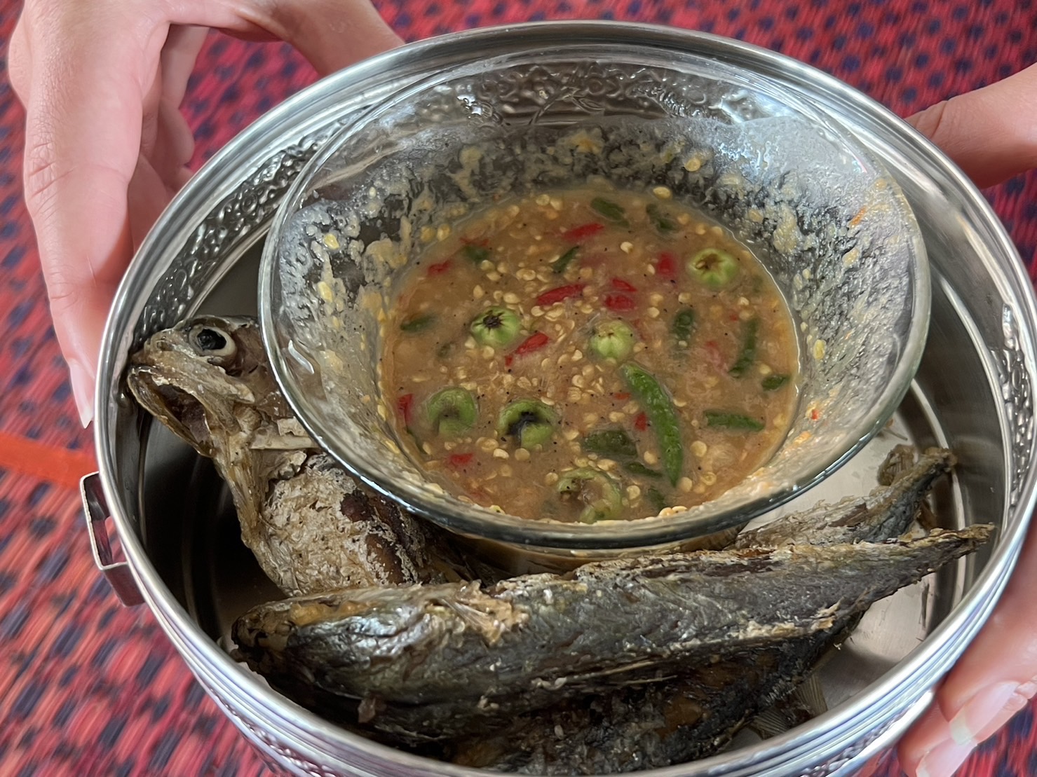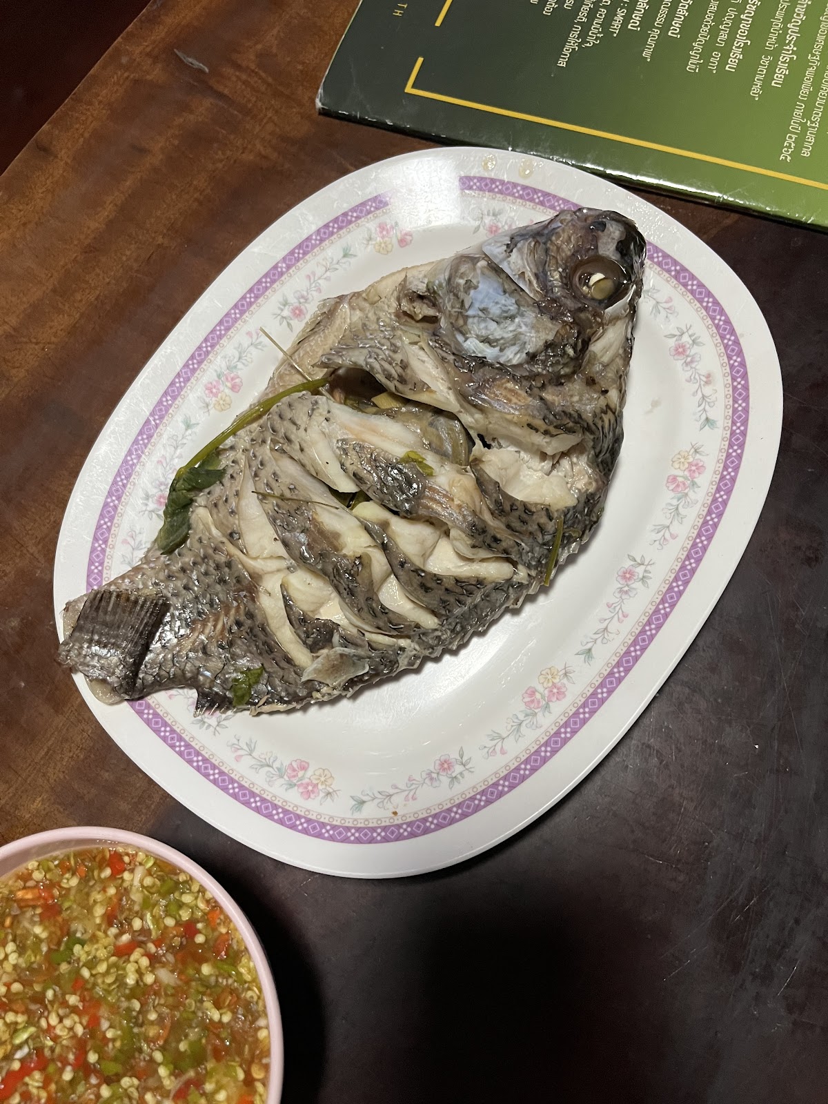 1) … bplaa sai naam prik (aka fish with spicy sauce)