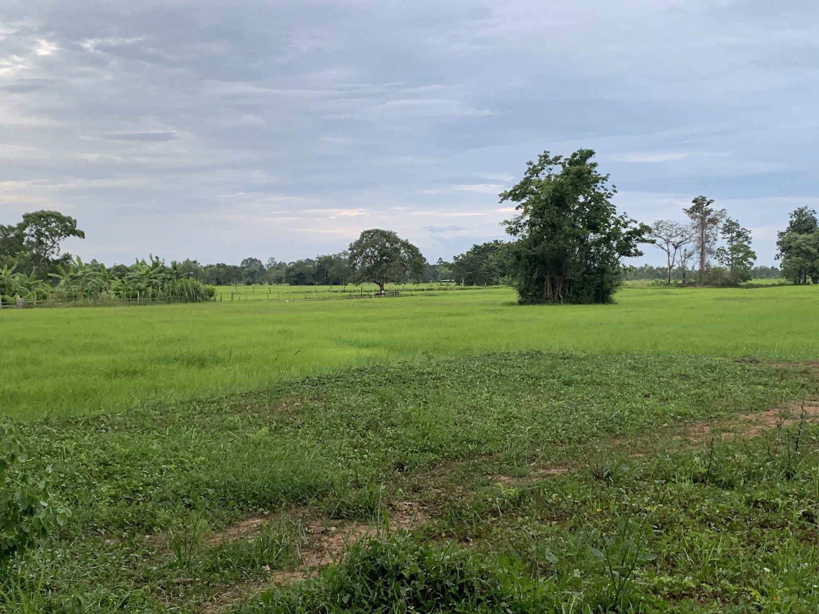 While the horizon does get cut off from view, it is by lush green trees that separate rice fields from banana and date trees. And while I know that somewhere past what I see there are homes, and roads, and of course 7/11s, it looks as if the green could stretch out forever.