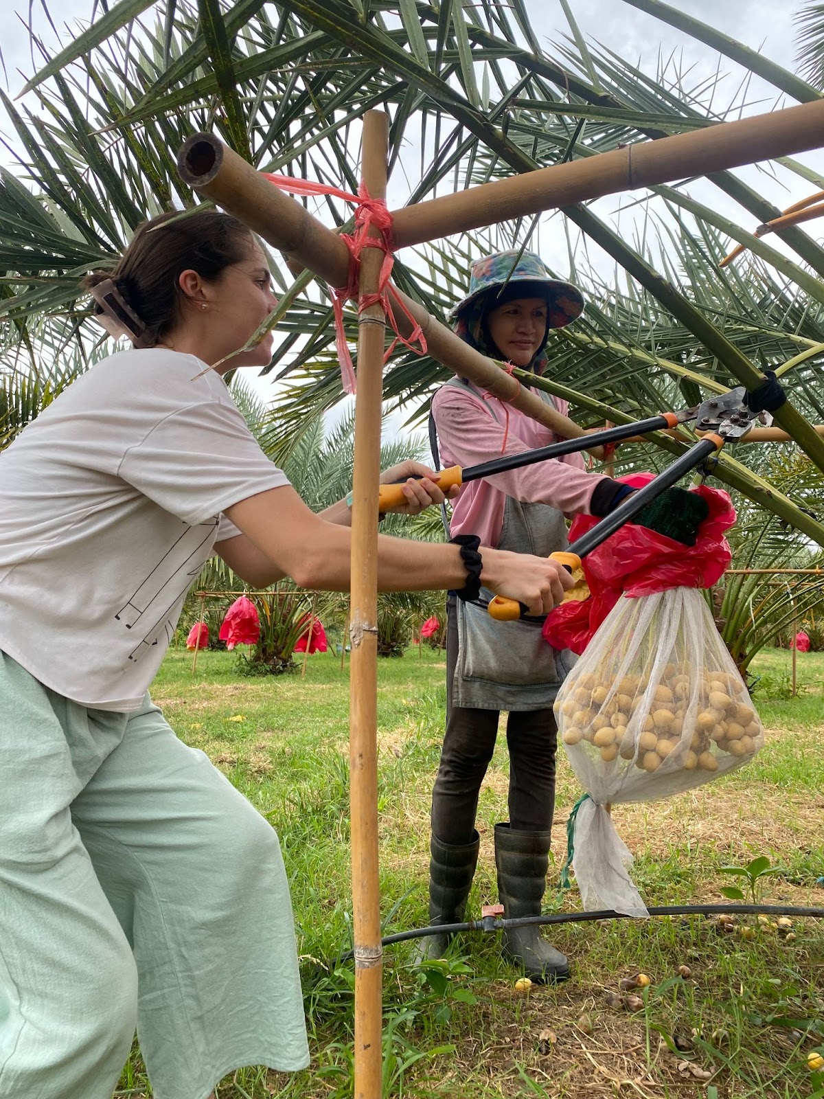 After Nam Nao, (read on for the story of that, which was the most memorable part of the trip) we were all slightly dazed and exhausted but we weren’t finished yet! P’Gop helped us round out our tour de Dito’s schools and we visited the last two before stopping at a date farm on the way home to handpick some of the largest FRESH dates I’ve ever seen. They even let me cut down the bunch! P’Gop gifted us each a bundle and my coworkers loved them when I brought them back to my site.