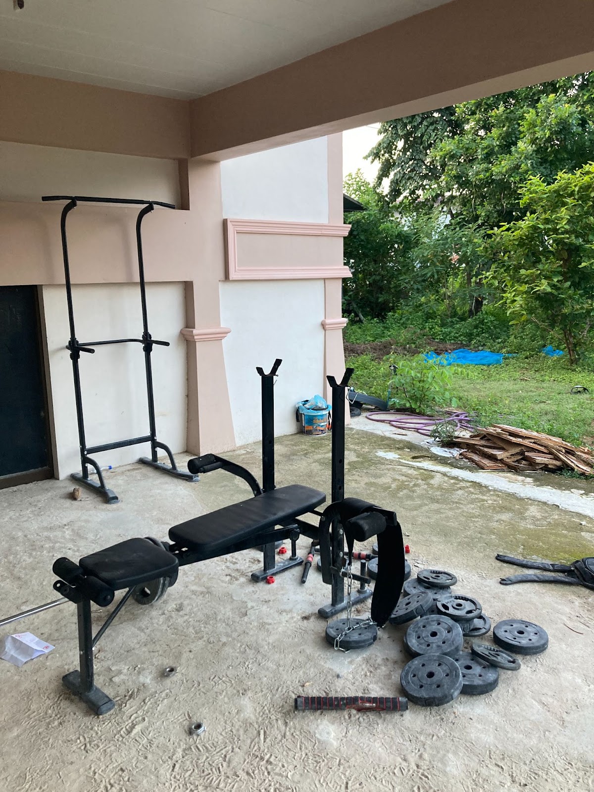 I used the entire move in allowance of 9000 baht (perhaps a teeny bit more) to buy a home gym, complete with a bench, barbell, dip belt, adjustable dumbbells, pull up/dip stand, jump rope and 100 KG of weights. Nothing like getting yoked by yohk-ing [lifting] (ยก-ing) weights.