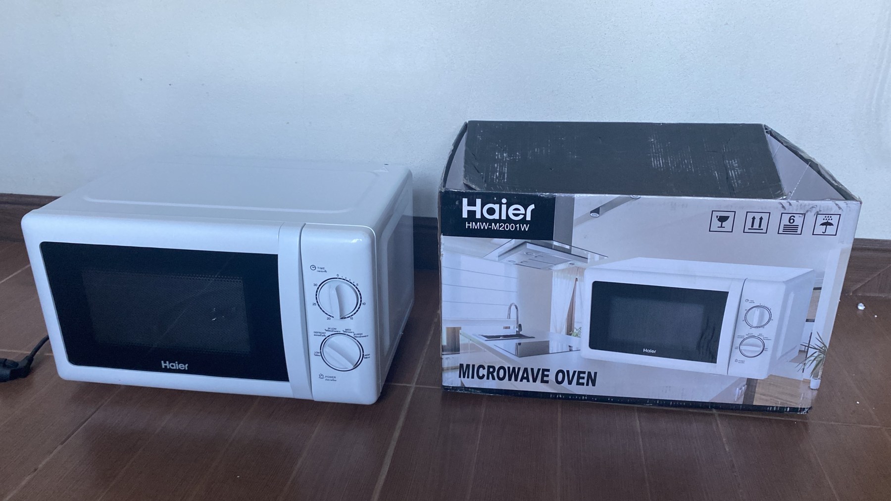 I moved into my own house about a month ago and it has everything I could ever want… except for a microwave. I lasted one month without one, but there’s only so many times I can heat up plain white rice in a pot on the stove, as it’s quite annoying. I broke down and spent 1500 baht on a Shopee microwave, which came promptly in 2 days, and I was so excited I immediately unboxed it upon its arrival. I also ordered a shelf to put the microwave on, since there’s no counter space left due to the aforementioned stuff the house came with. But since my shelf hadn’t come and I was too excited to wait, I piled the microwave box on top of another box in my kitchen and made a makeshift, very podunk, shelf for my microwave.