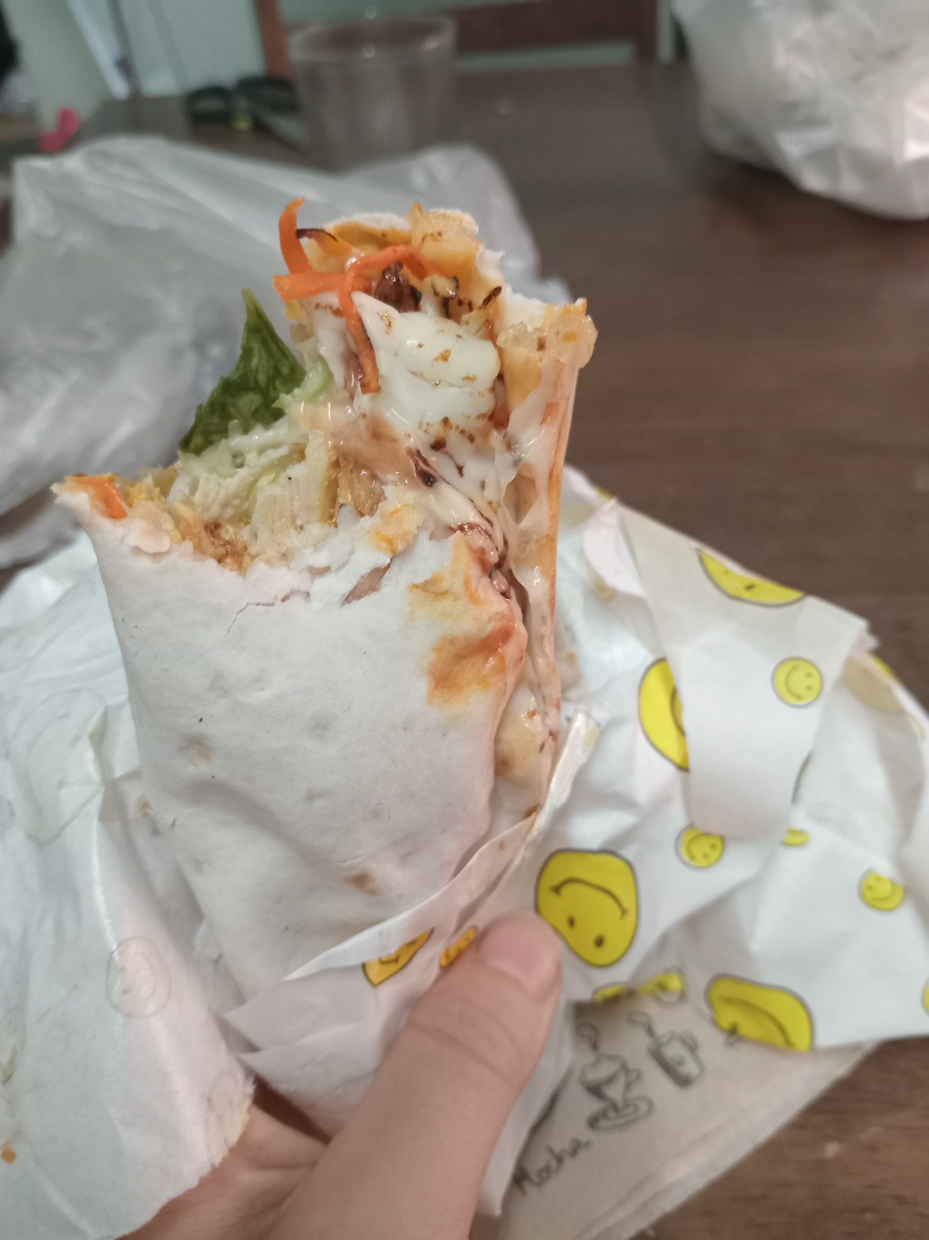 A chicken cheese kebab from the dtalaat (market) in the city about 30 minutes away. It has cheese. I get one every time we go, and am delighted every time.