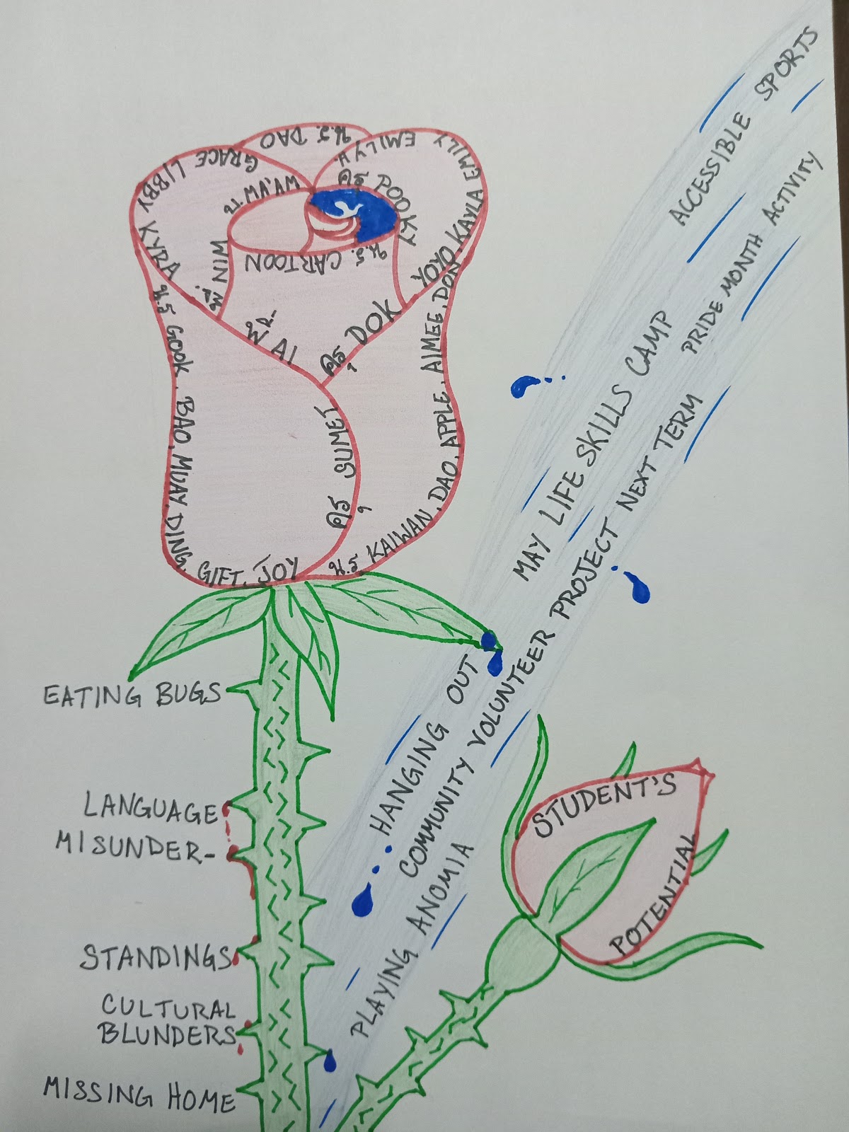 My community is my rose! The students are my favorite part of this experience and they’ve kept me going on more than one occasion. I have also formed friendships with other teachers at my school including my two counterparts. I love my counterparts, I got so lucky with them. One is leaving to have a baby soon and I am so excited to be a น้า (aunt). My host family has also been very welcoming and understanding which I appreciate so much.