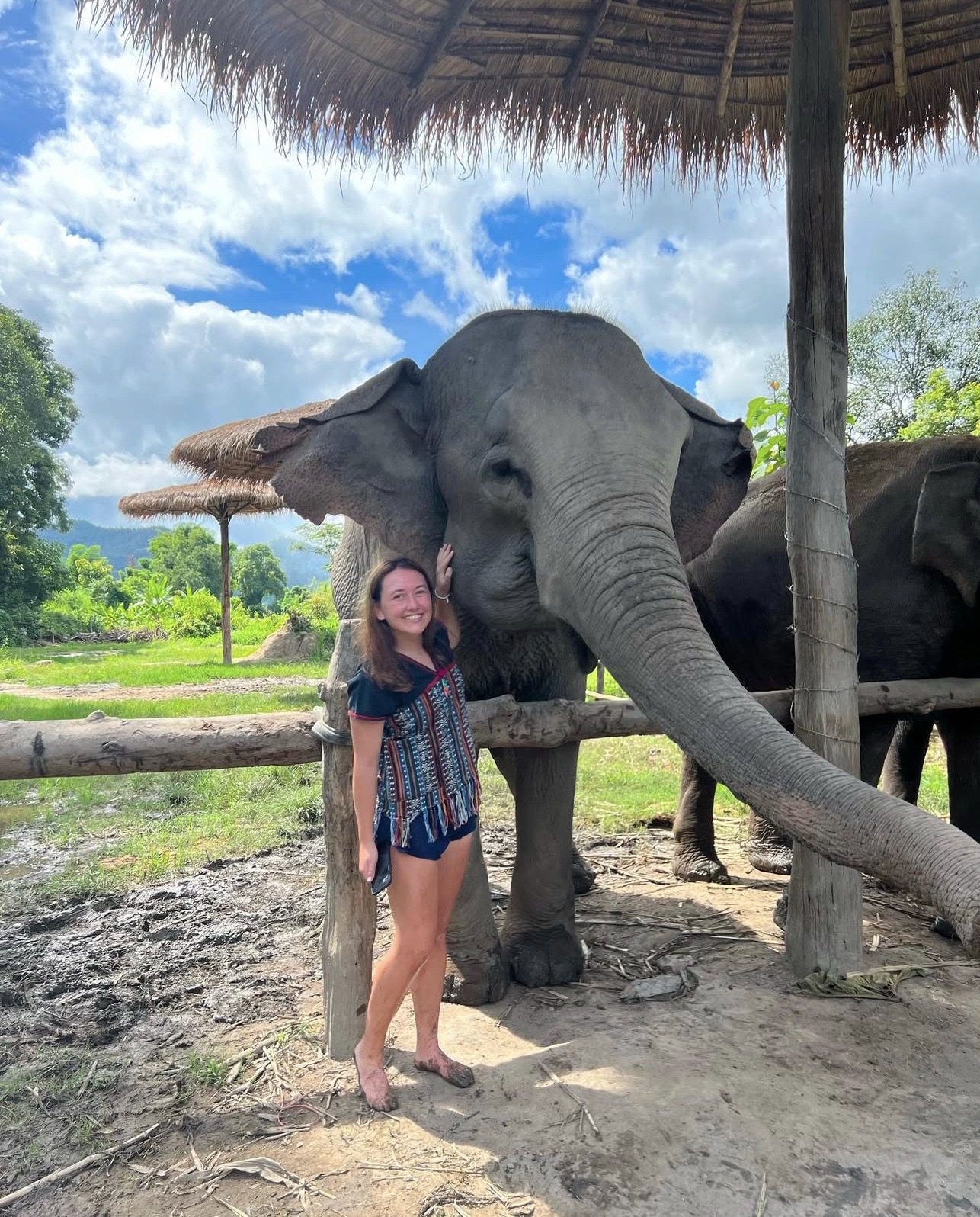 Hey! I’m Ella, but nowadays only my English-speaking friends call me by that name. When I first met my counterparts in Bangkok after swearing in as a Peace Corps volunteer, they were determined to give me a proper Thai nickname. They settled on “fah-sai”, which translates to clear sky. I am from the rocky, windy coast of Maine, where clear skies are about as common as a cool day in Thailand. I applied to the Peace Corps in the winter of my senior year of college during the peak of my career as a collegiate skier. Three days after applying, I had a season-ending injury, prompting me to reassess my goals. I am now serving alongside my partner, fellow volunteer, and former teammate, Tucker. We live in Sisaket, a province in the northeast region of Thailand, hugging the Cambodian border. With four languages spoken in my region, I have the privilege and constant challenge of never knowing if someone is speaking a new dialect or if my Thai listening skills are just not that sharp yet. At least with my Thai nickname, I can always tell when people are talking about me.