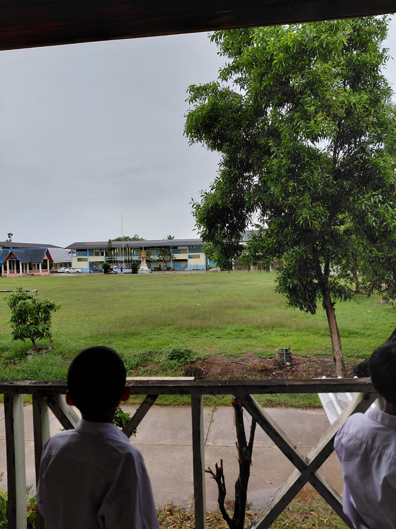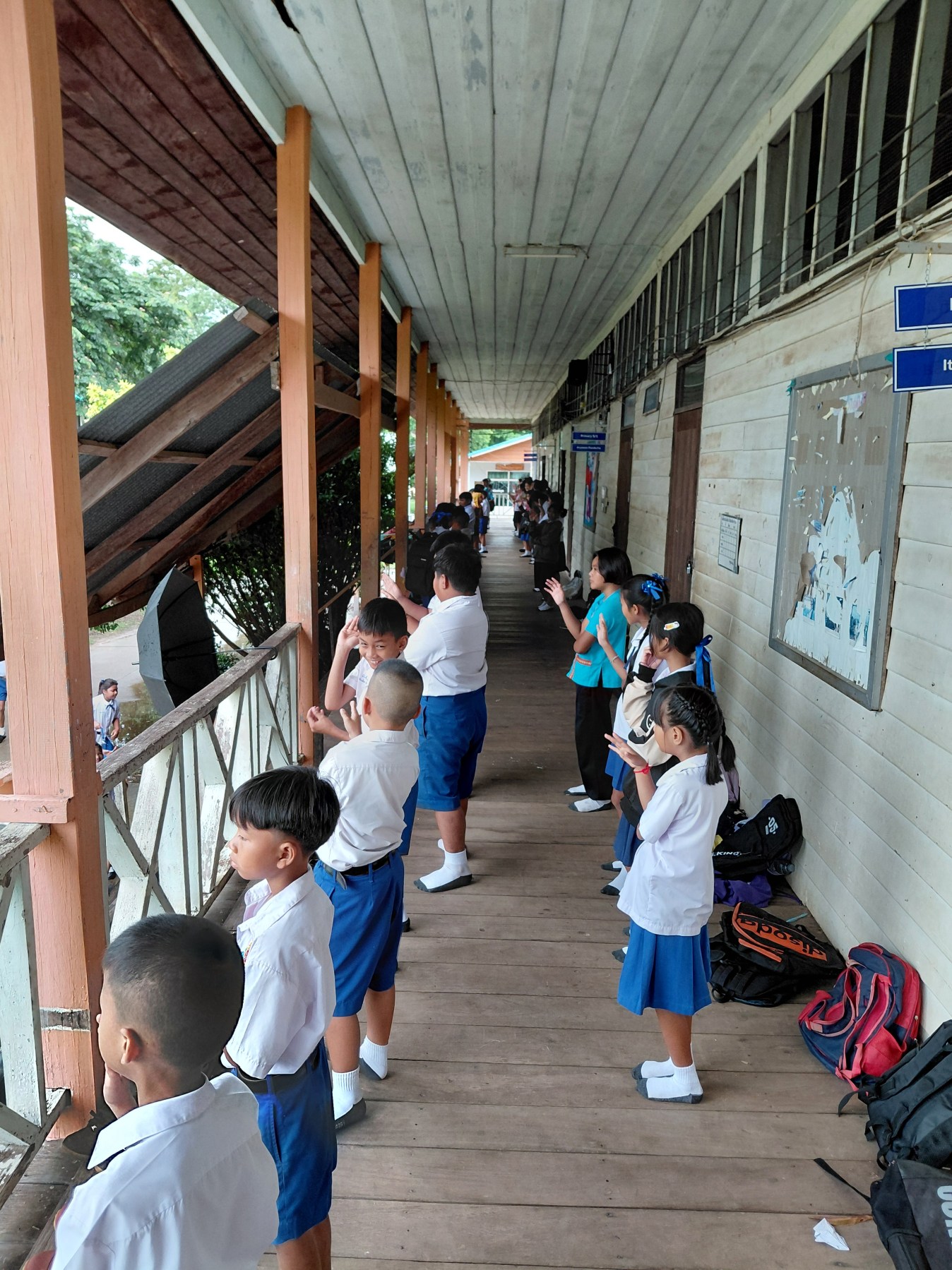 Our school started at 8 AM(ish) on May 16th, a dreary Friday. When it’s raining, or threatening to rain, the students line up in front of their homeroom classrooms for morning assembly. I stood with my fourth through sixth graders, facing the flag pole for the national anthem and morning prayer.