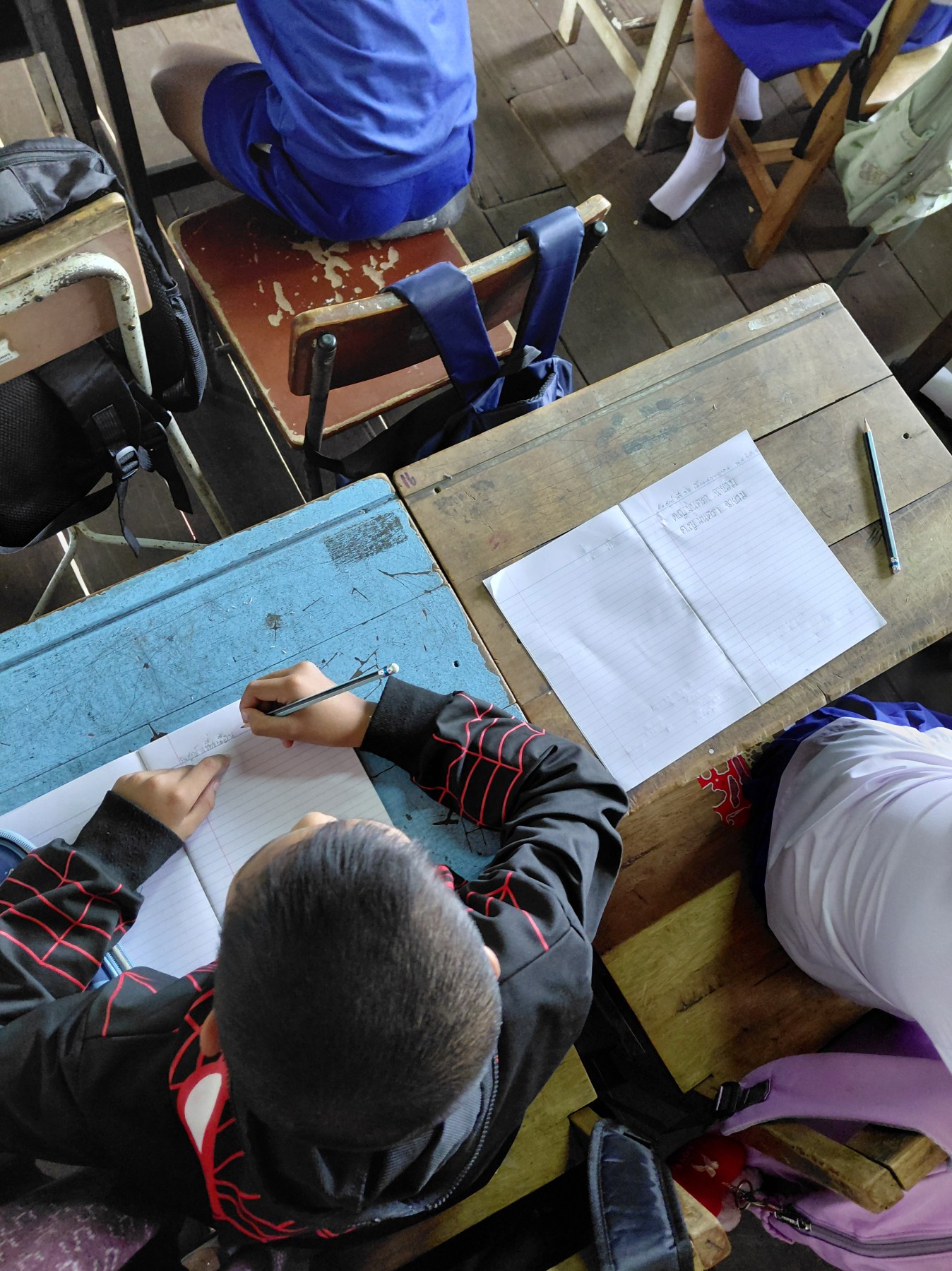 Next up was supply distribution. Every student is provided a new notebook for each subject they study, while the classroom gets a new supply of pencils, colored pencils, and rulers. As Thai schools require uniforms, families have the opportunity to order new ones each school year, embroidered with the students’ name.