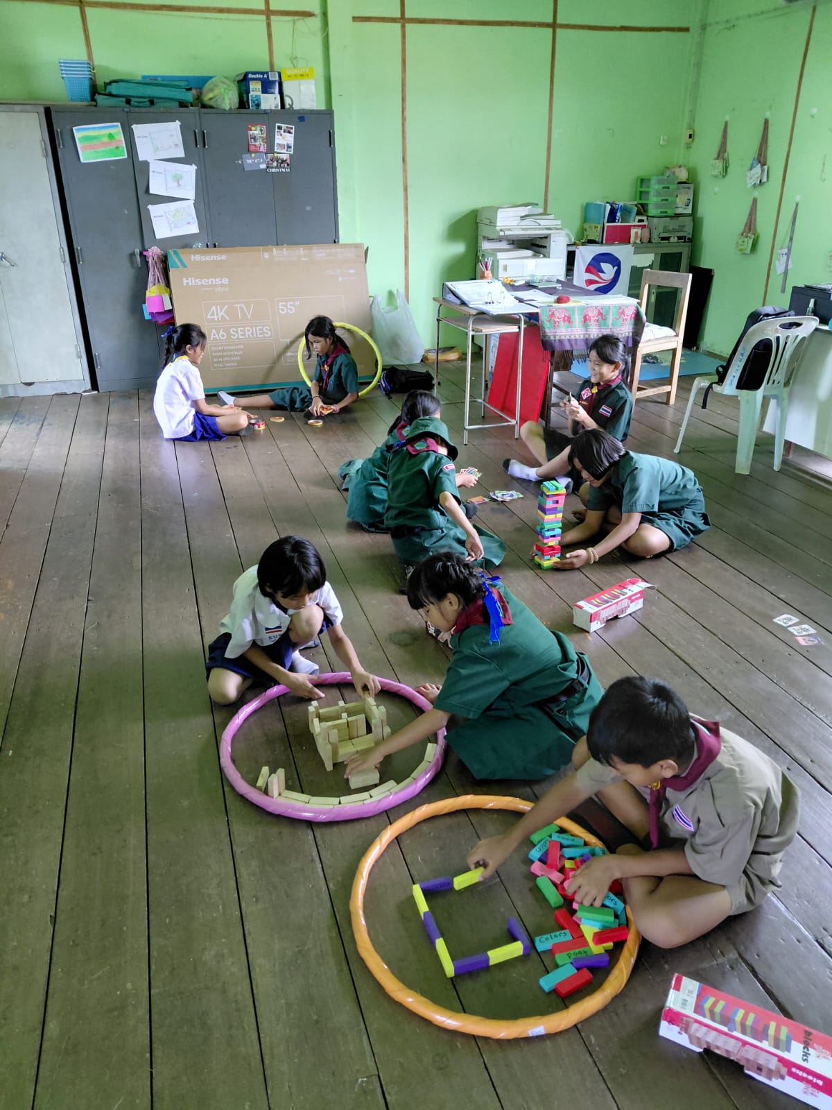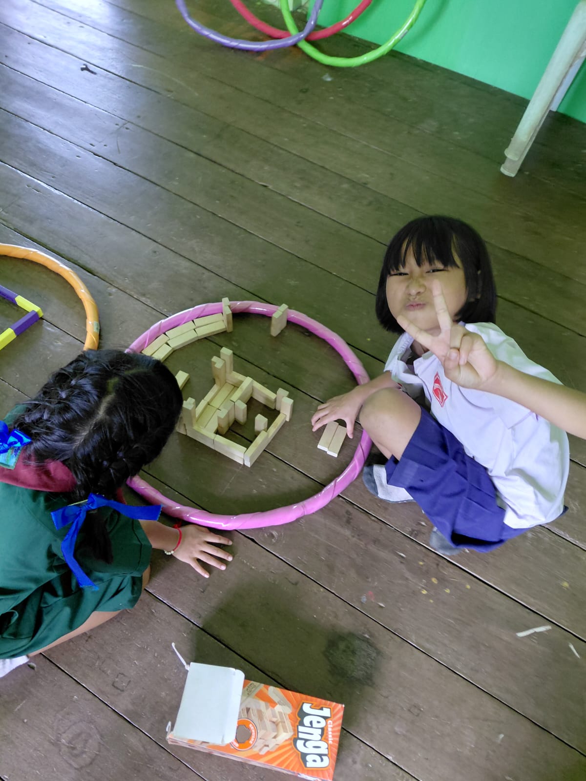 Now, my afternoons in the office look like this. Students come to color, play with my Uno cards and Jenga sets, or create ridiculous obstacle courses using the hula hoops I bought for an English camp. Once, I spent an entire hour doing splits, cartwheels, and backbends with a group of 4th grade girls who decided they urgently needed to stretch instead of going home.