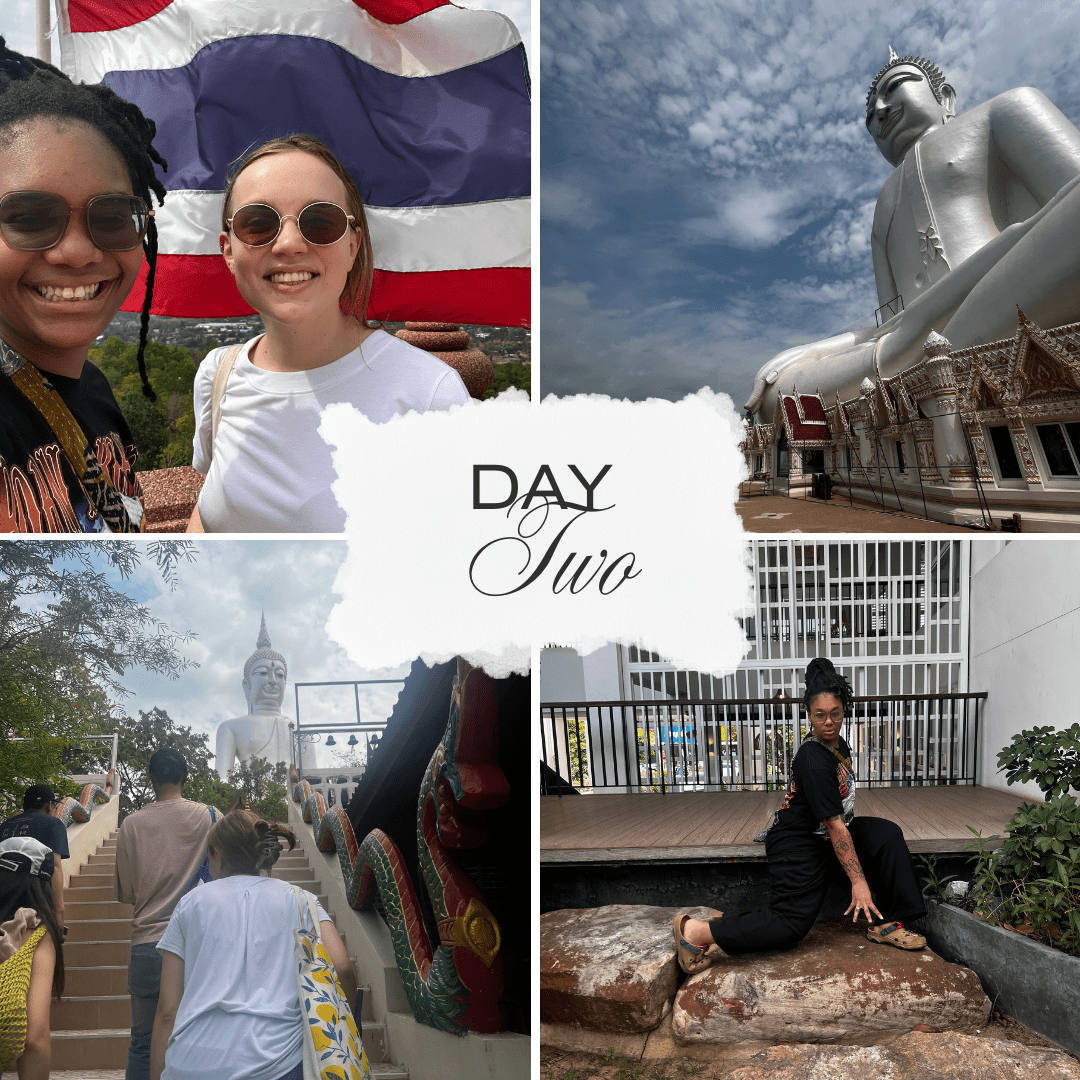 We promised ourselves that we would stay home and relax on the second day, but the complete opposite happened. We paid a visit to a family friend’s father-in-law in the hospital before going to a nearby cafe. At the cafe, it was decided by the same family friend that we would go to a nearby province to visit a well-known temple. We’re always down for a spontaneous road trip, so we quickly agreed. We stopped to eat mouthwatering Vietnamese food before we arrived at Wat Roi Phra Phutthabat Phu Manorom in Mukdahan. I had heard about the great Mekong River, but it was breathtaking to look across and see the country of Laos. We spent the entire day admiring Mukdahan’s beauty. The night ended with Ellie and me making our own custom music beats. They will never be released; they were so bad.