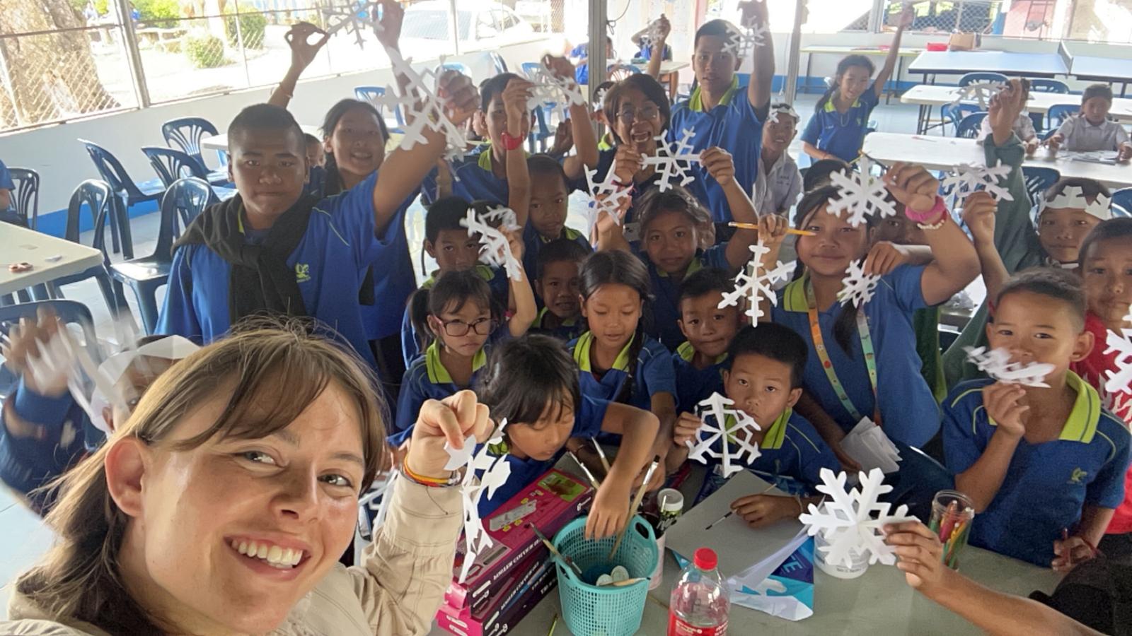 From the sweeping views of Lampang, we’ve traveled even further North to the crisp air of Chiang Mai and the district of Fang, to the home of YinD volunteer Melena. Full of boundless energy, balanced by an embracing warmth, her blend of Chaa Thai has us sipping with wide eyes while sinking further down into cozy cushions. Instead of setting up our own table, we find seats at the coffee shop her family owns, underneath her own rooms. She spills all about navigating cultural differences, tackling hard topics in the classroom, balancing a whopping 8 schools, and how her expectations shifted due to her counterpart’s health concerns.