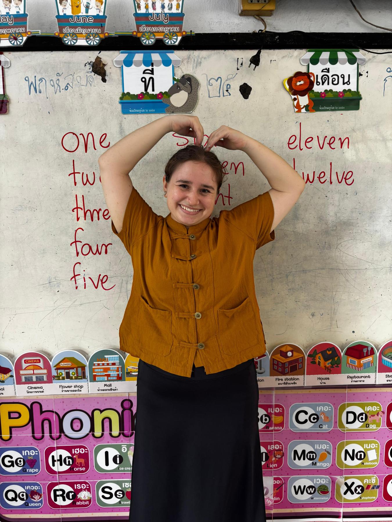 Hi, I’m Sam! I’m an English teacher in Ratchaburi Province. I’m half Thai and grew up moving around the world, so serving here has given me the chance to connect with my heritage in such a meaningful way. I’m loving every second of it! Outside the classroom, you’ll find me taking photos around the neighborhood, playing guitar, or (most likely) doing laundry.